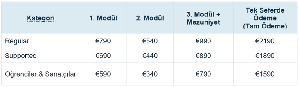 - Tek Seferde Toplu Ödeme: Program ücretinin tamamını peşin ödemeyi tercih edenler için indirimli bir ücret sunulmaktadır.