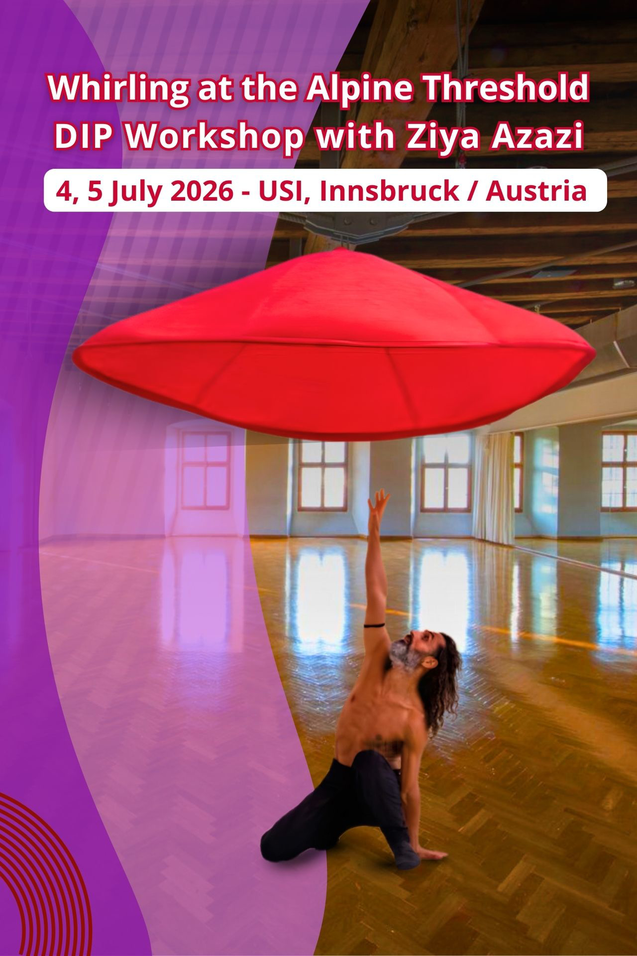 Ziya Azazi, dönüşü çağdaş sahne dili ve farkındalık pratiği olarak araştıran bir performans sanatçısı ve eğitmendir. Uzun yıllar boyunca farklı ülkelerde sahne çalışmaları, atölyeler ve eğitim süreçleriyle dönüş bilgisini paylaştı; bu deneyimlerin içinden Dervish in Progress yaklaşımını geliştirdi. Bugün bu yöntemle hedeflenen şey, dönüşü insanların hayatına güvenli, uygulanabilir ve sürdürülebilir bir araç olarak taşımaktır. İki günlük Innsbruck buluşması da bu yolculuğun bir parçası: yeni başlayanlara açık bir kapı, daha önce çalışanlara ise pratiği rafine eden bir derinleşme alanı.